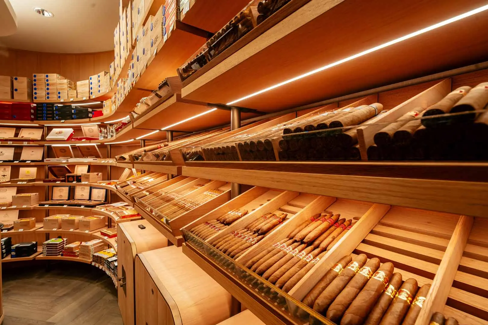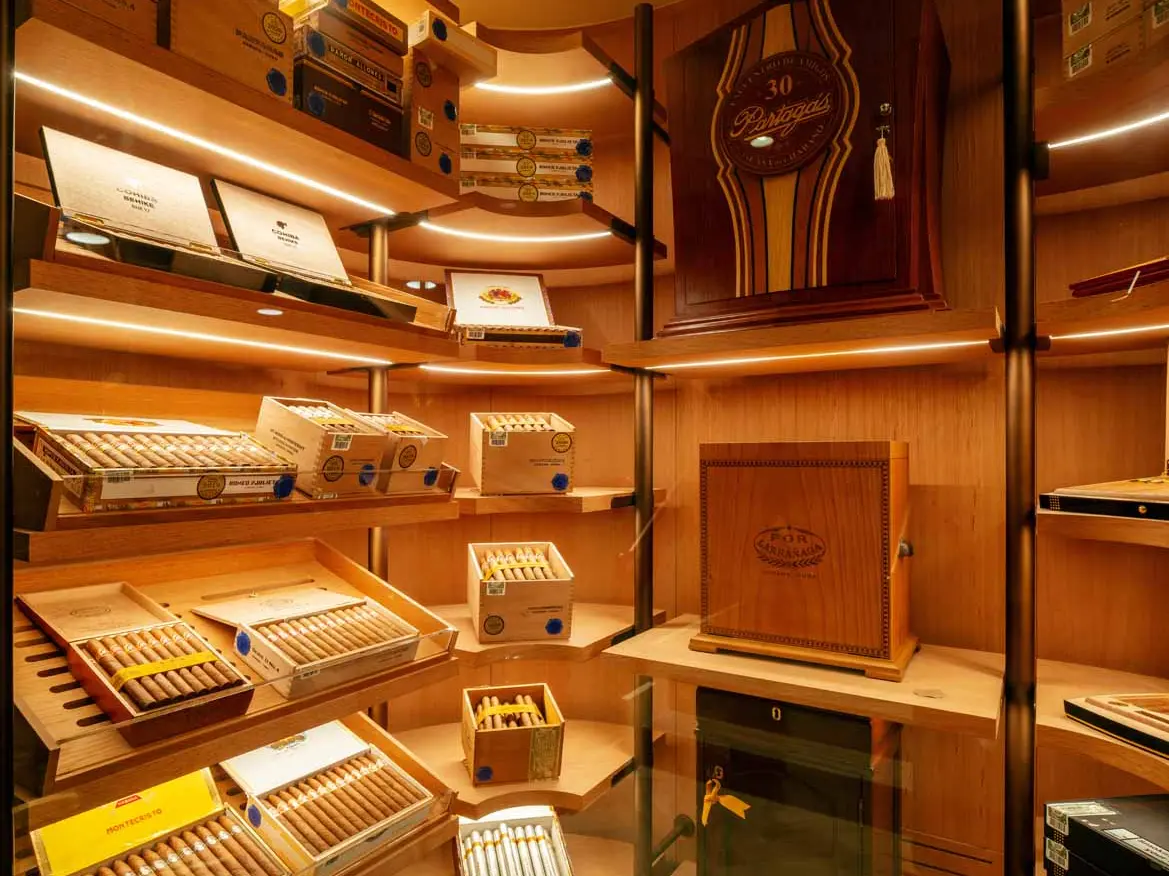 Located in the heart of St James's, the space reflects the brand's focus on precision, atmosphere, and client experience. At its centre are two bespoke walk-in humidors, crafted in Italy, forming both the architectural and functional core of the store.